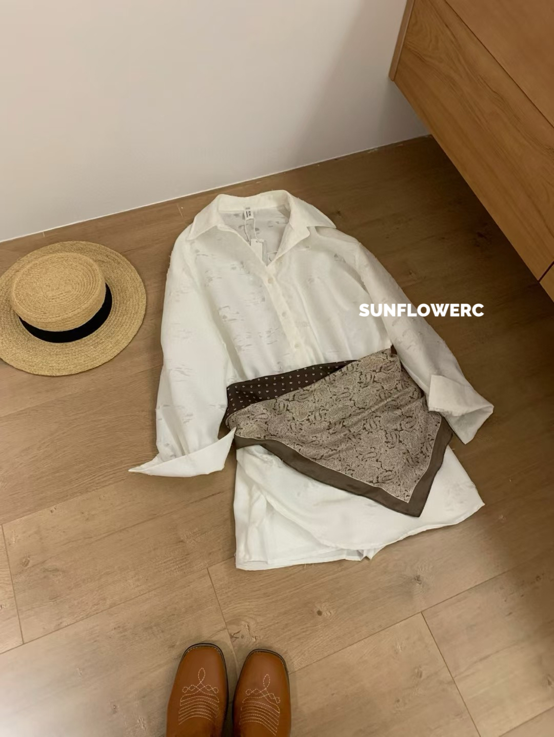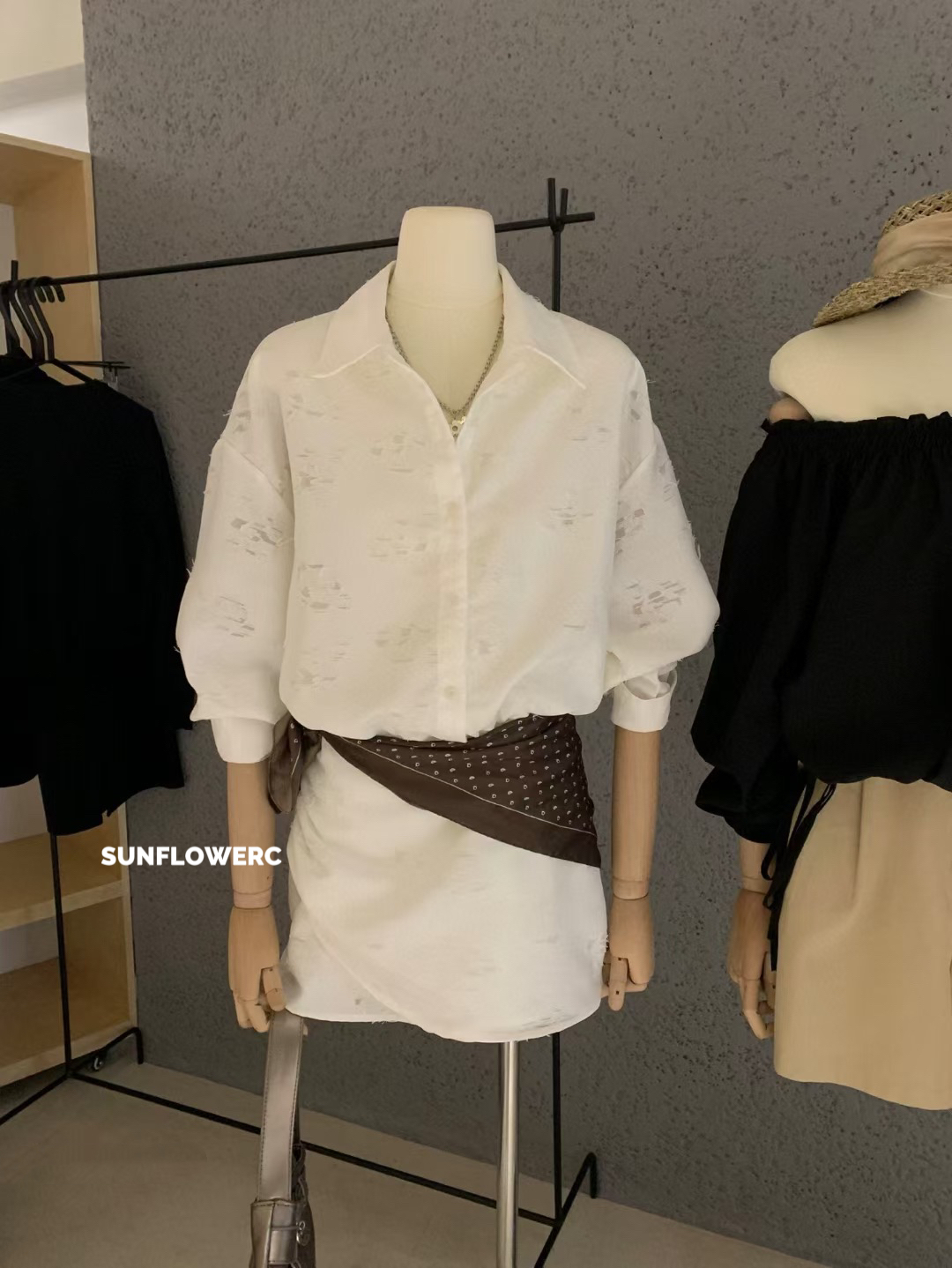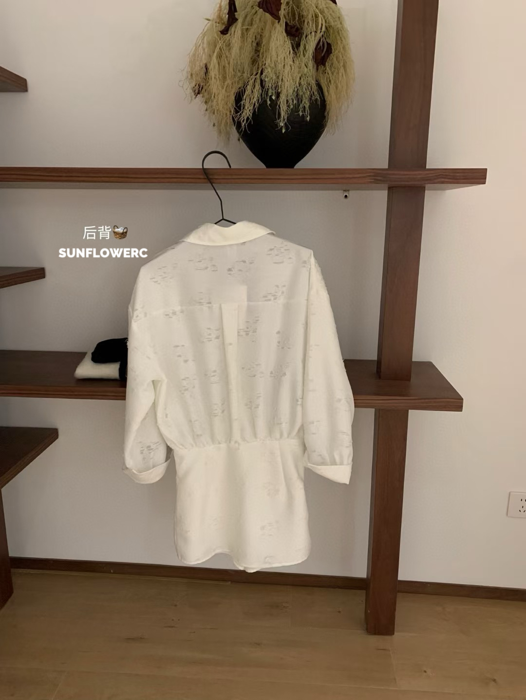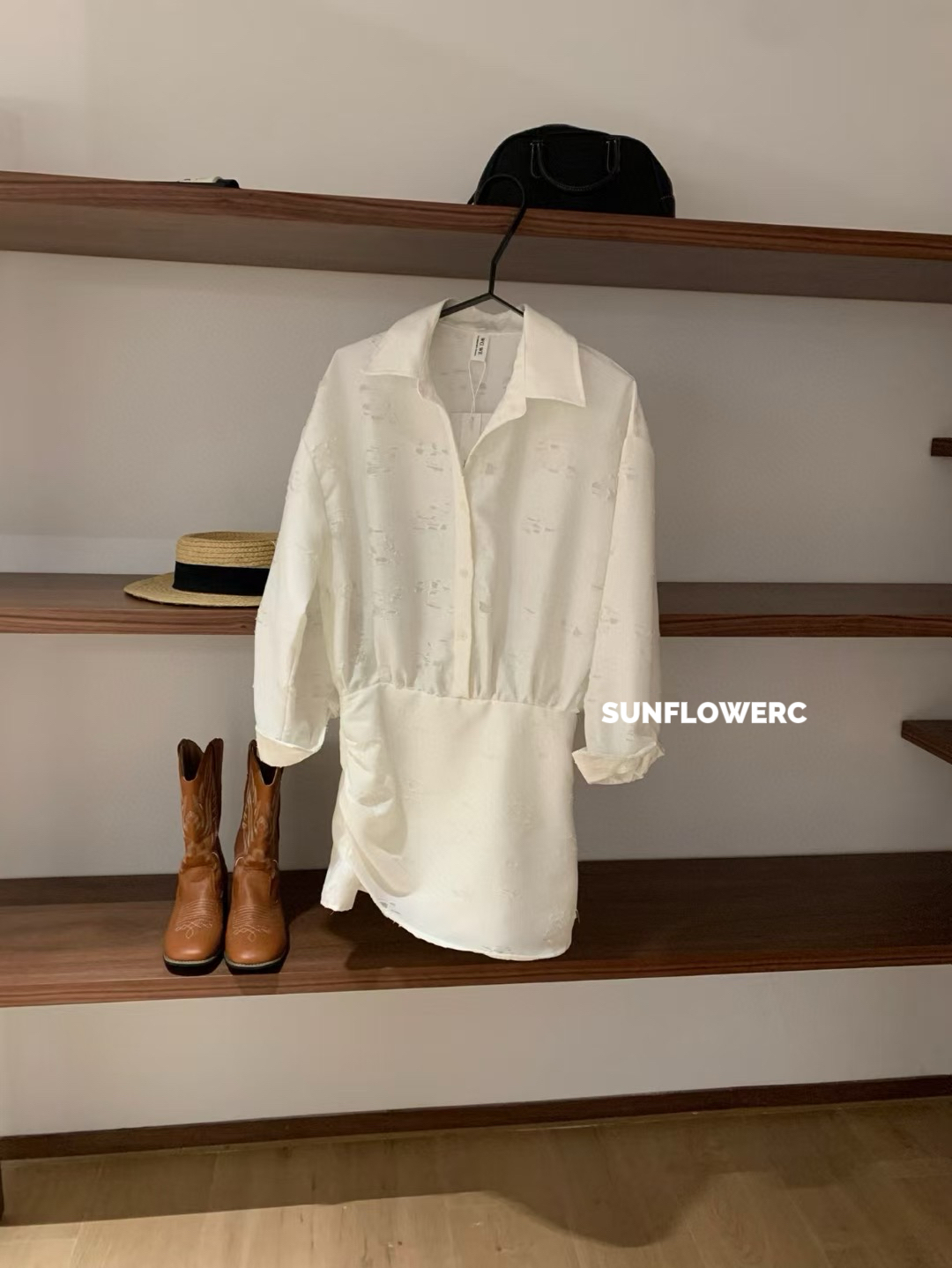 A1415 镂空花花长袖收腰衬衫连衣裙 | 有打底裤防走光🤍