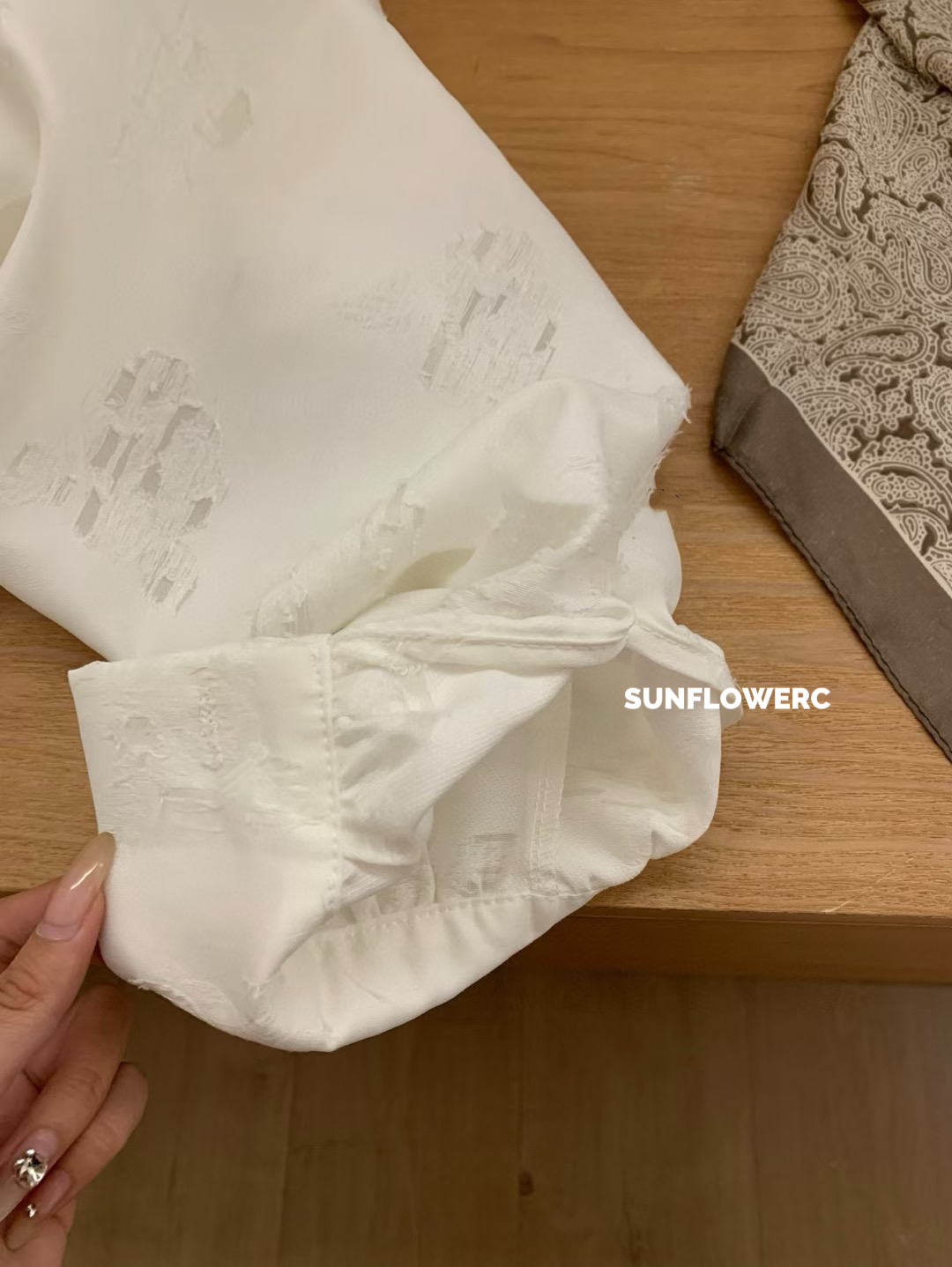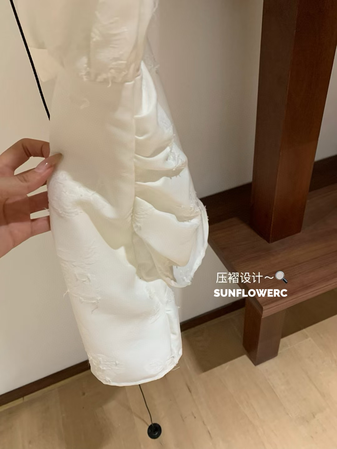 面料做了烧花工艺很有设计感, 但是不会透肤哦~美美美✨