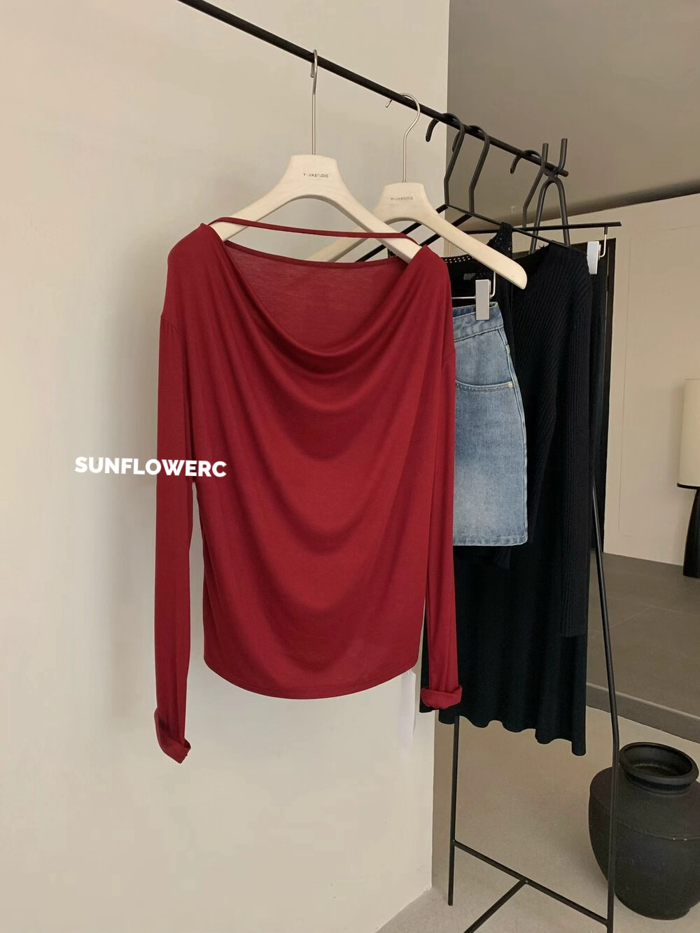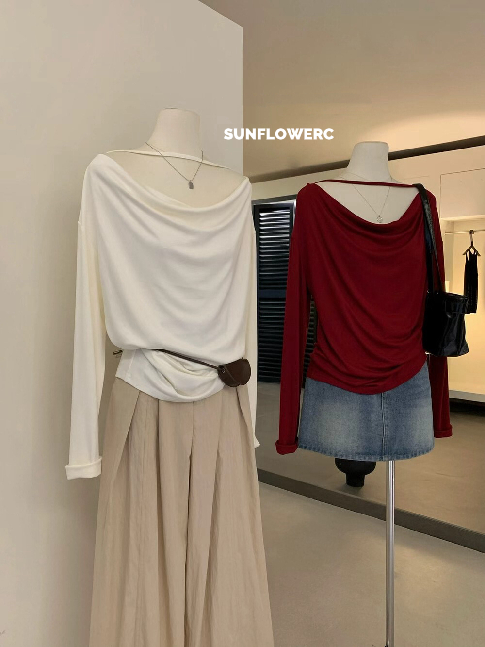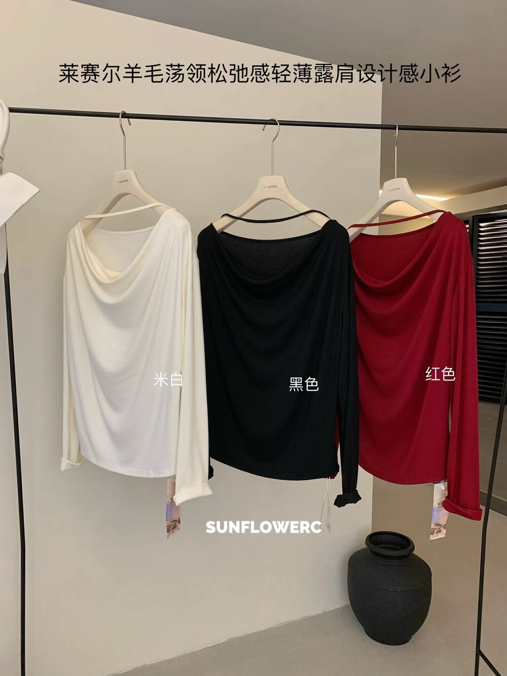 A1418 莱赛尔羊毛荡领露肩上衣