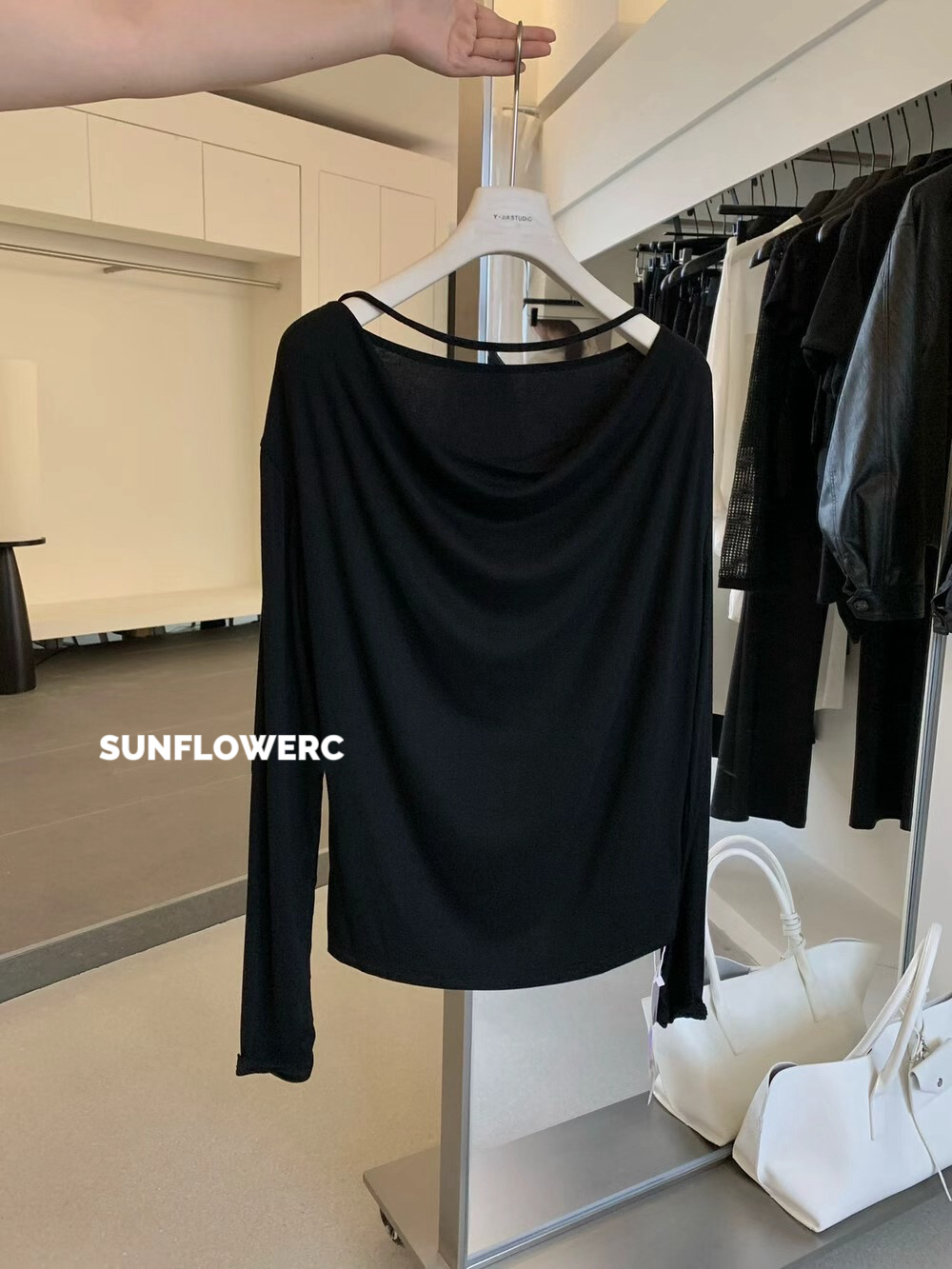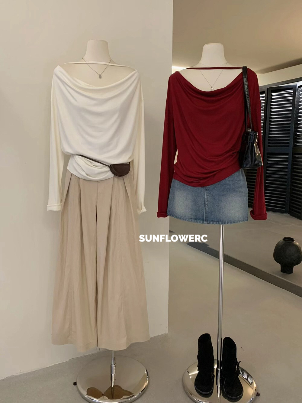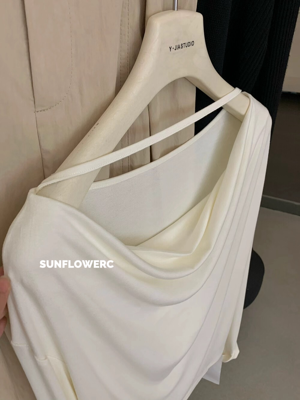 A1418 莱赛尔羊毛荡领露肩上衣