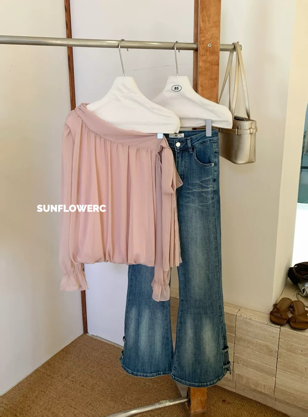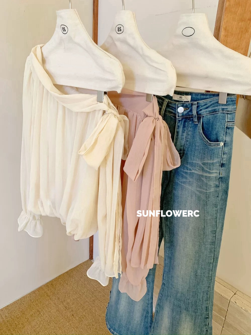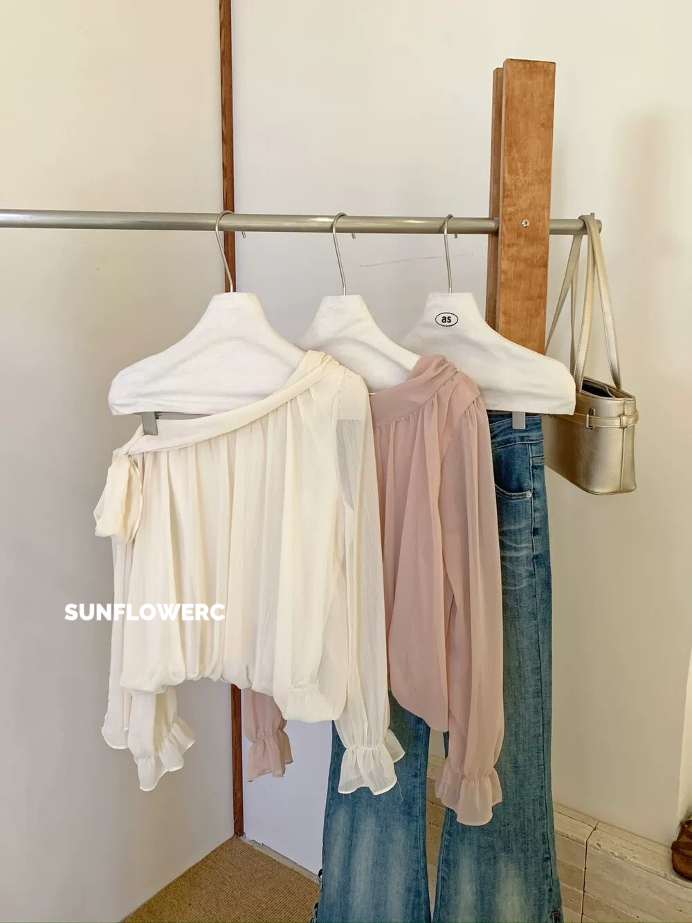 A1426 斜肩绑带蝴蝶结雪纺小衫 | 温柔仙女标配✨