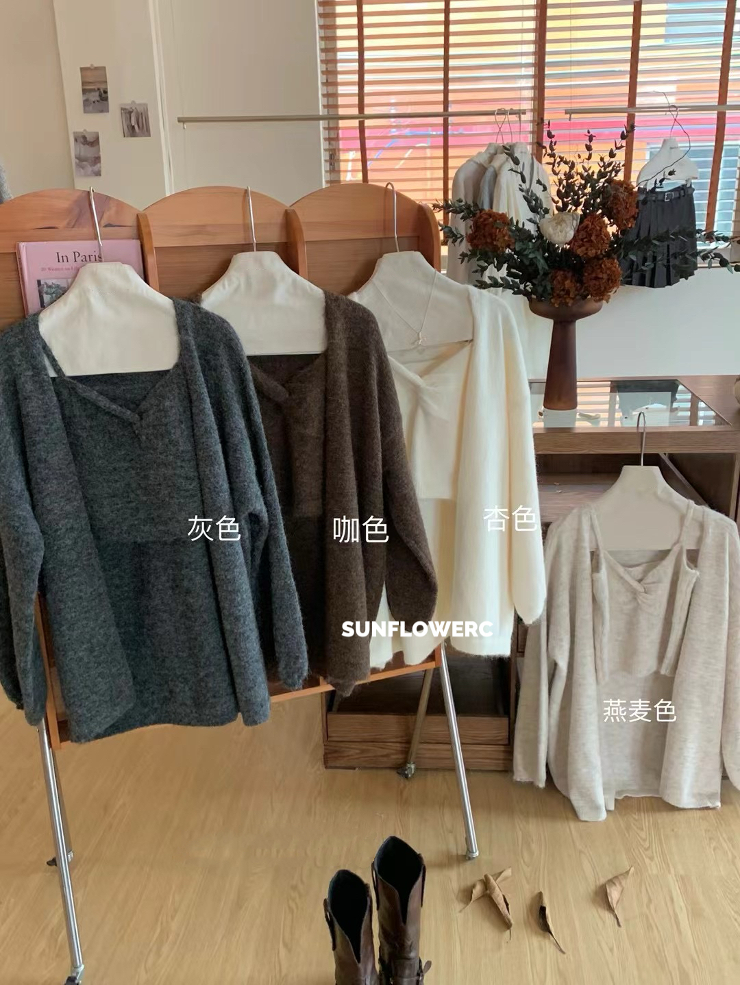 A1448 温柔风慵懒毛衣针织开衫+背心 | 秋季限定套装🧺