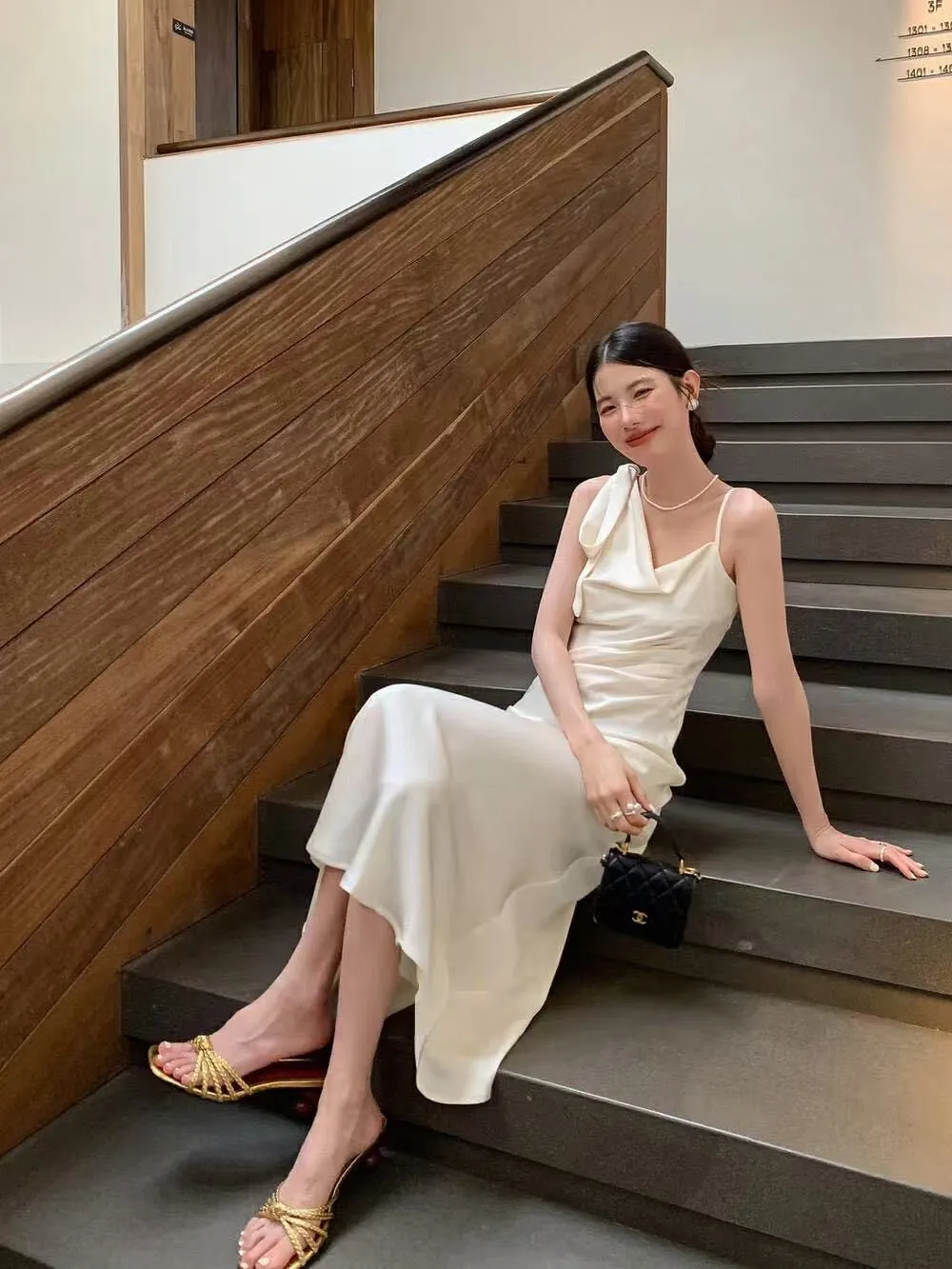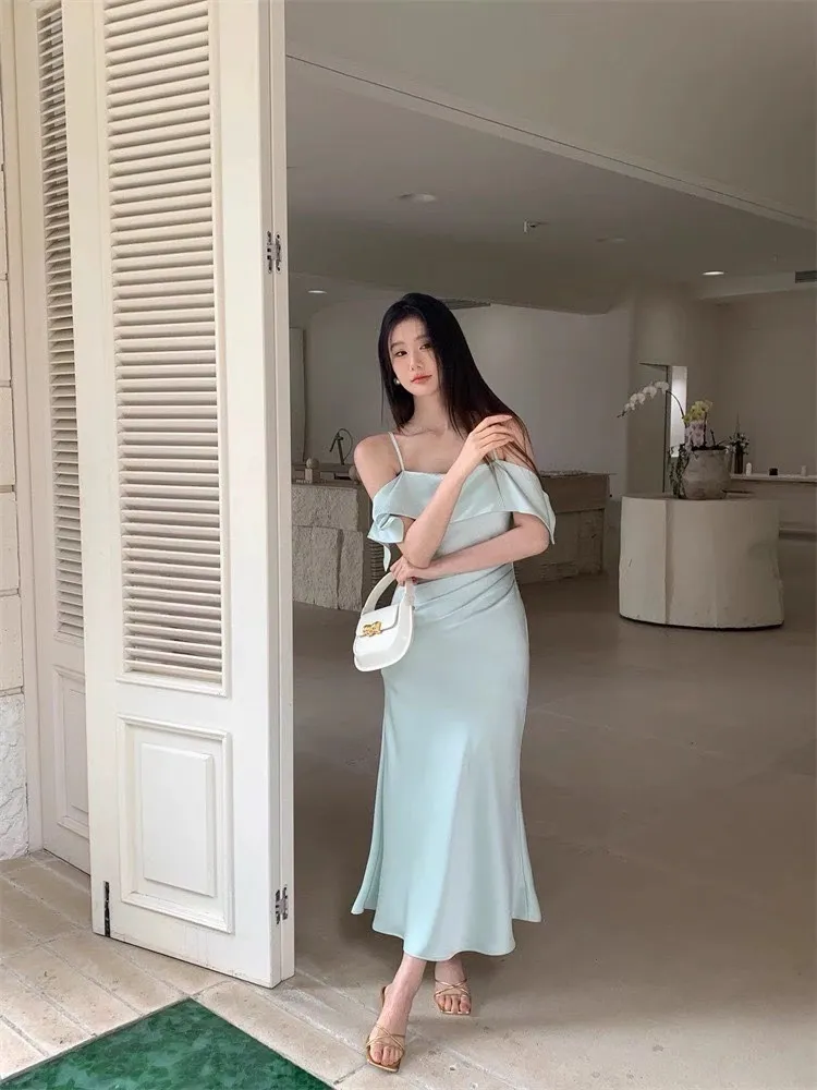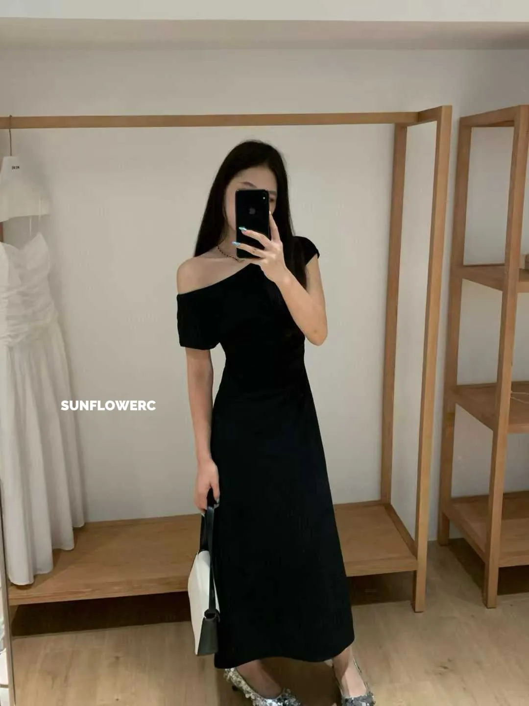 A1356 法式气质斜肩长裙 | 上班/上课/Dinner可以穿