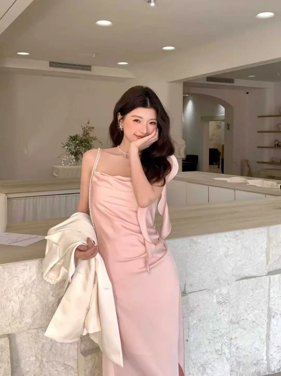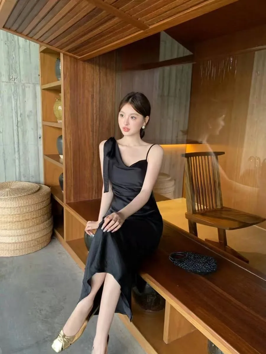 A1230 法式高级感缎面吊带小礼服 | 含胸垫