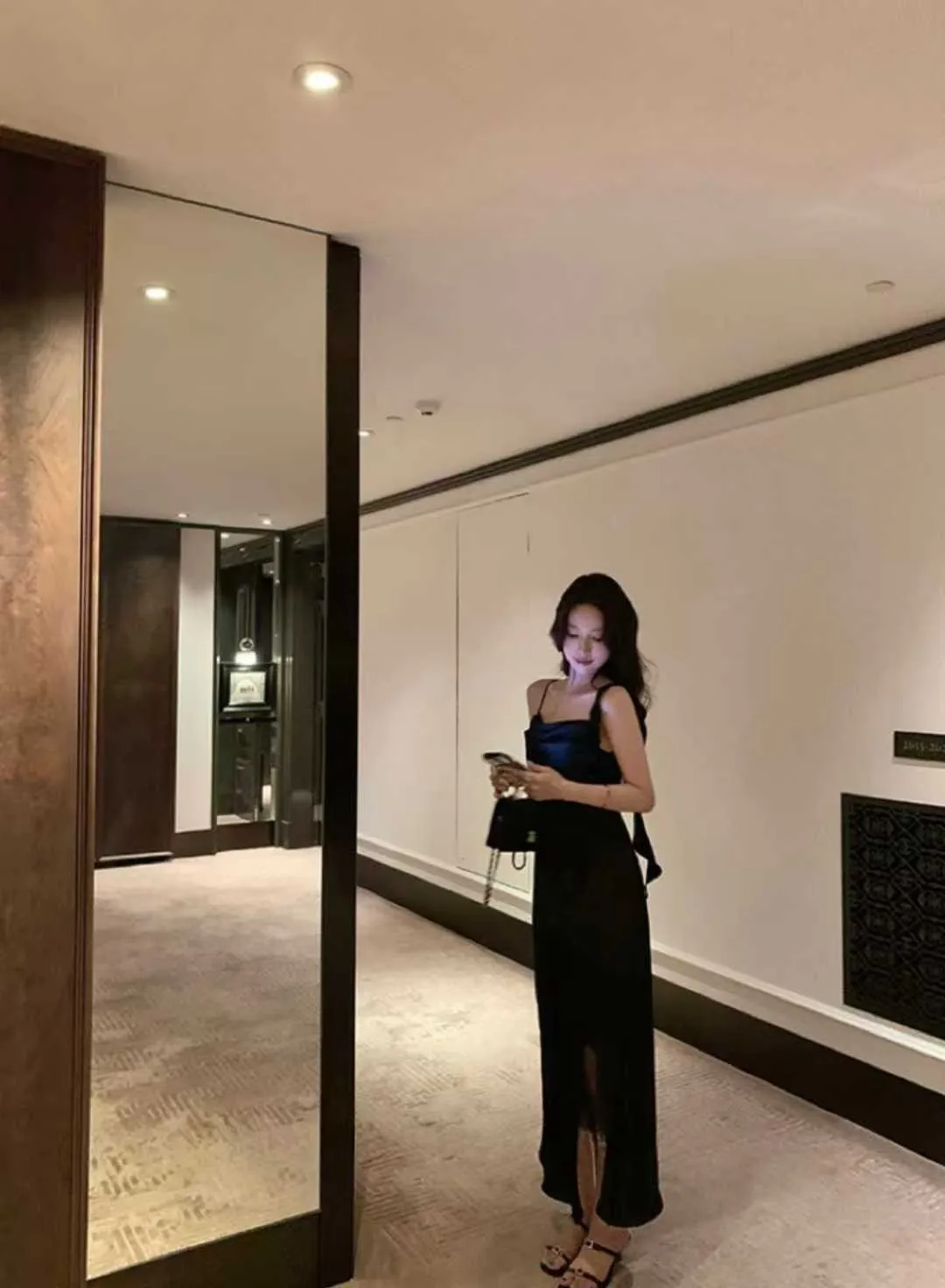 A1446 高级感香槟色缎面吊带小礼服🍷