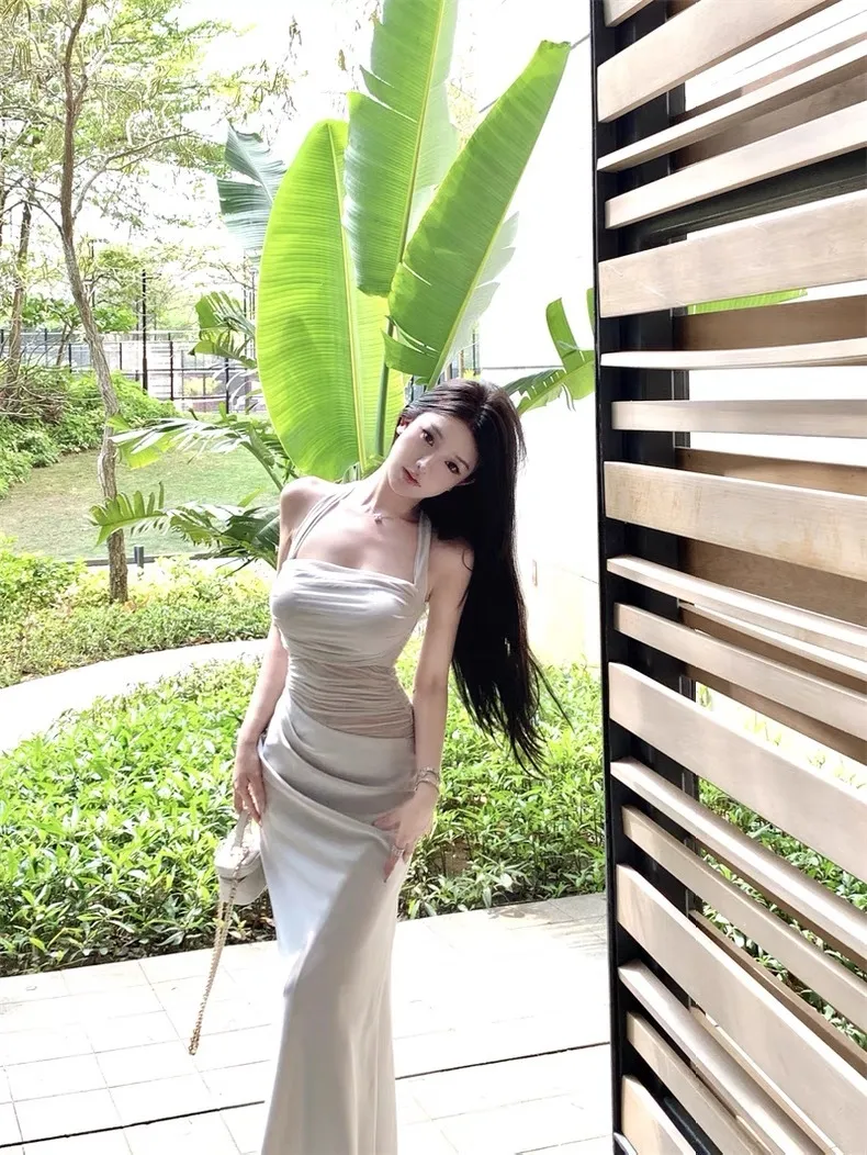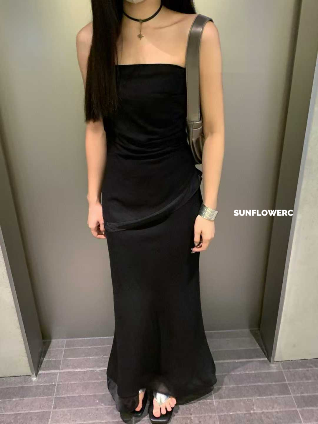 A228 法式吊带缎面皱褶感礼服 | 清货价不退不换
