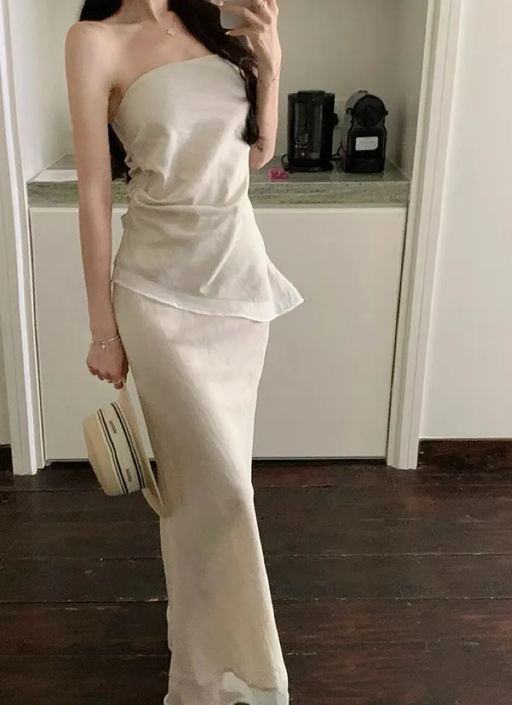 A1381 不规则棉麻抹胸+鱼尾半裙 | 两件式套装