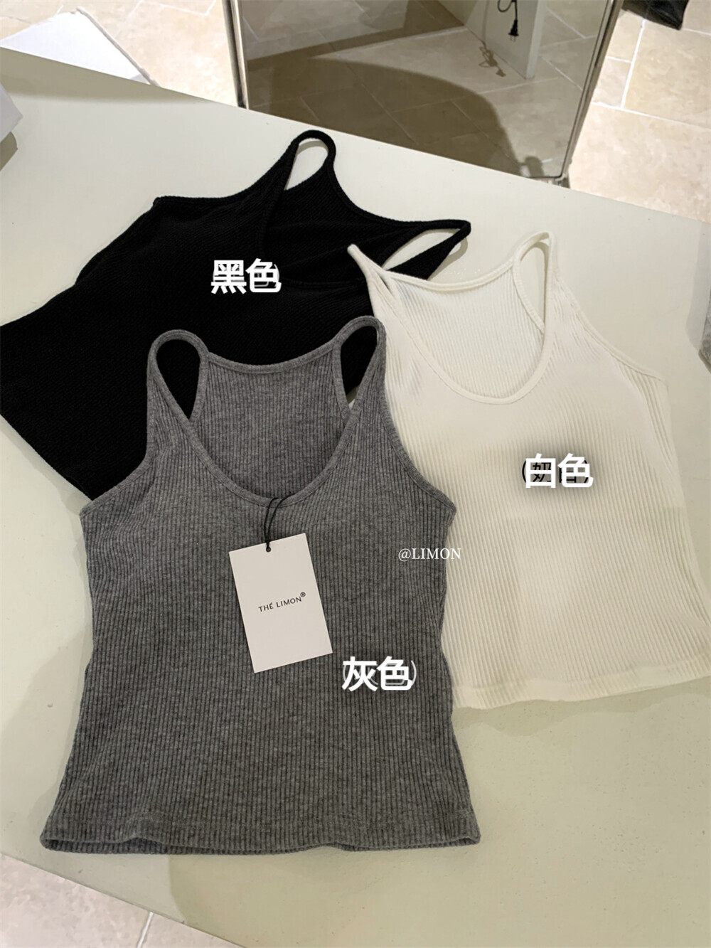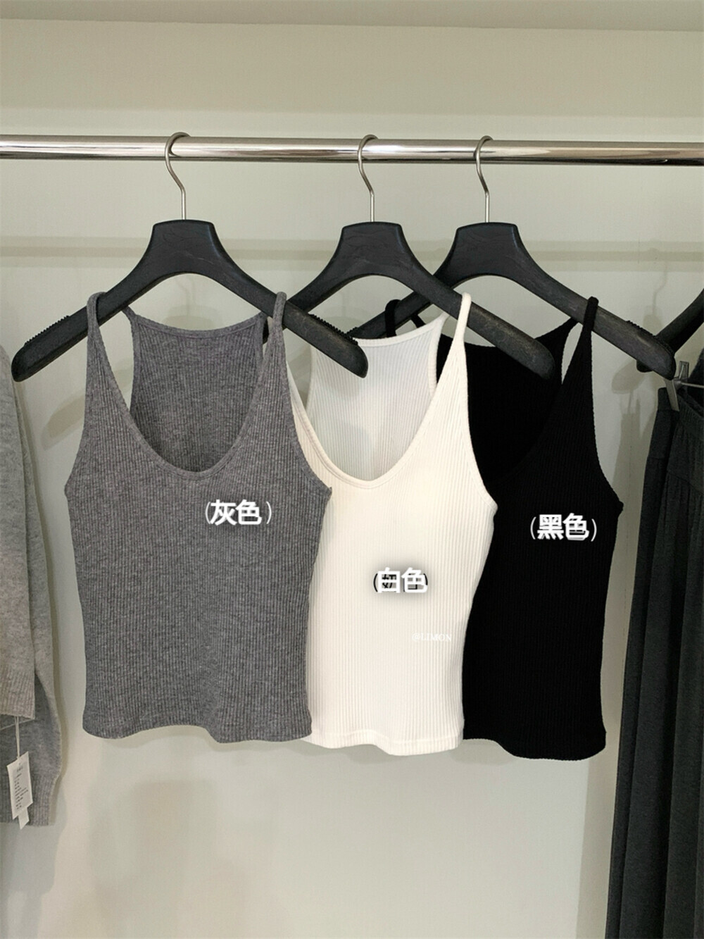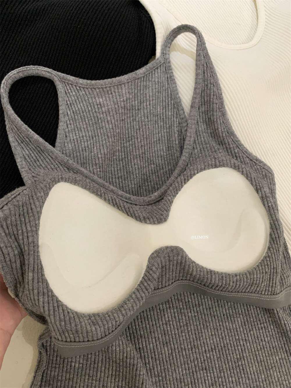 A1453 日常百搭挂脖螺纹工字背心 | 含胸垫