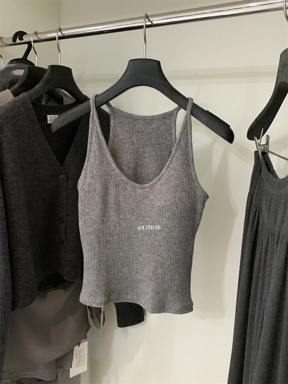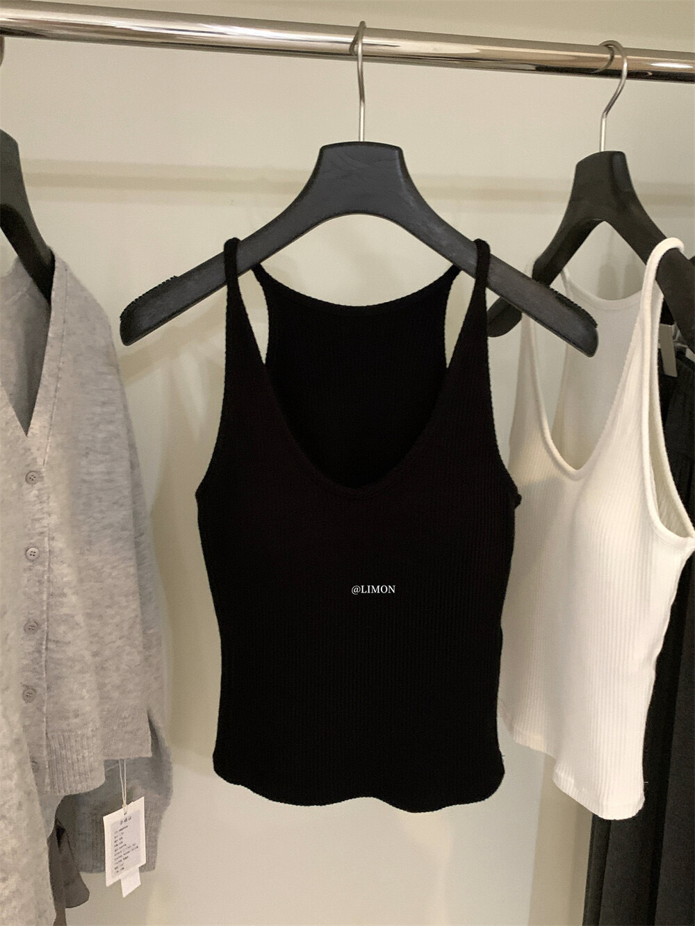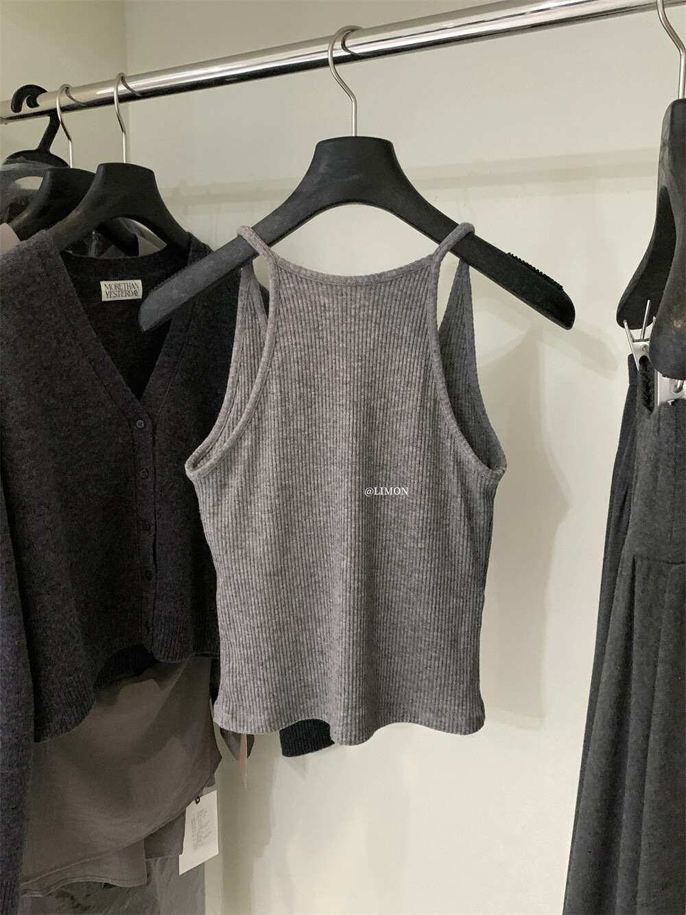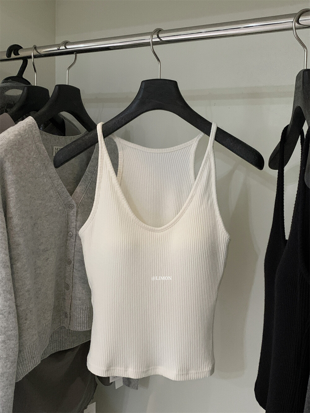 A1453 日常百搭挂脖螺纹工字背心 | 含胸垫