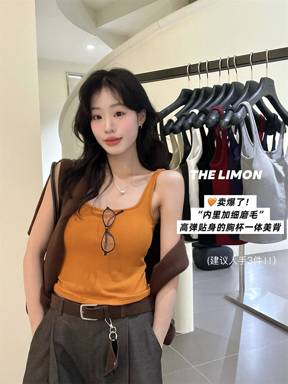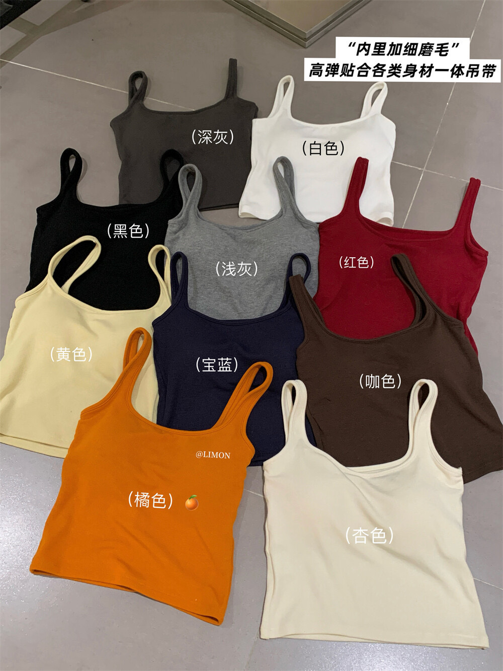 A1466 日常百搭高弹粗肩带带胸垫背心 | 带细磨毛🐰