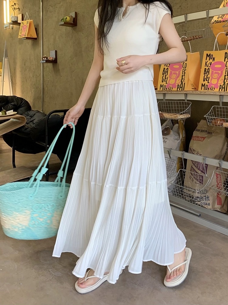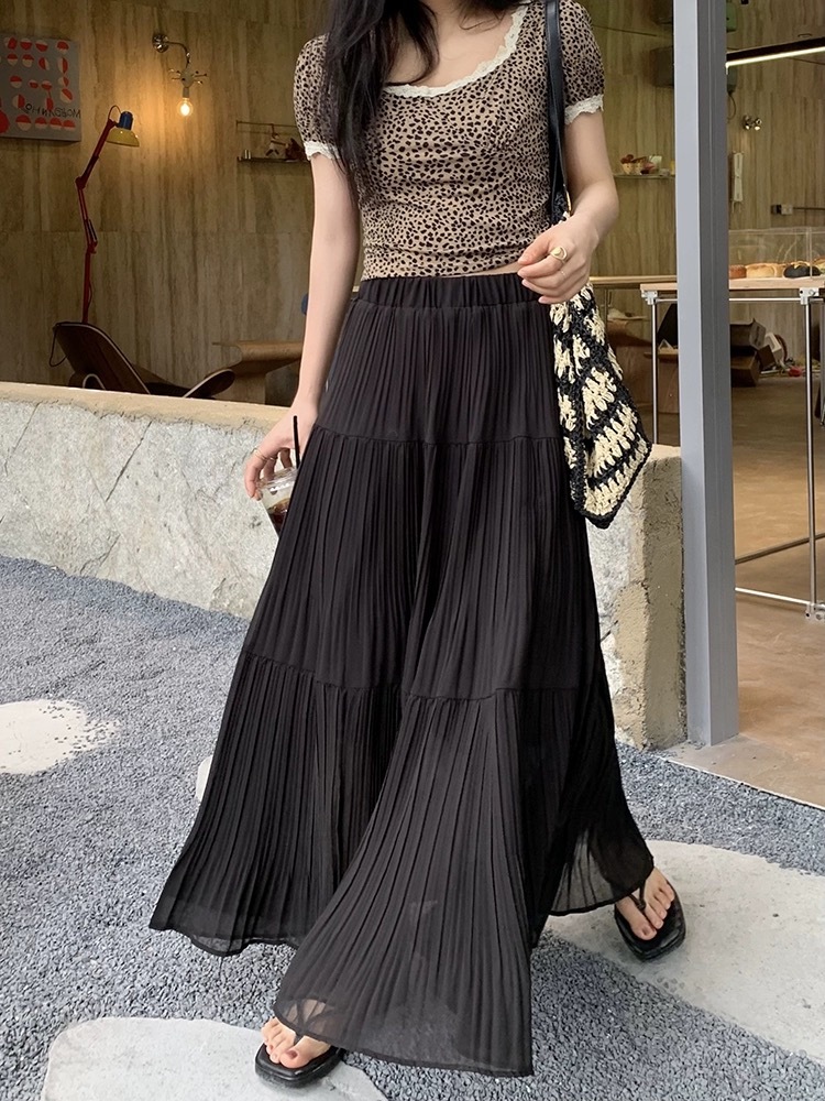 A1553 日常百搭压褶大裙摆半裙