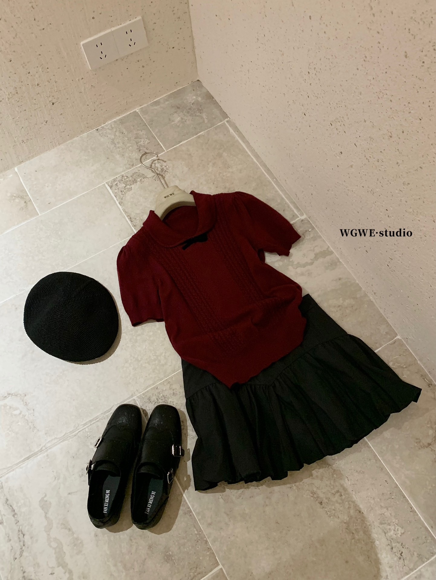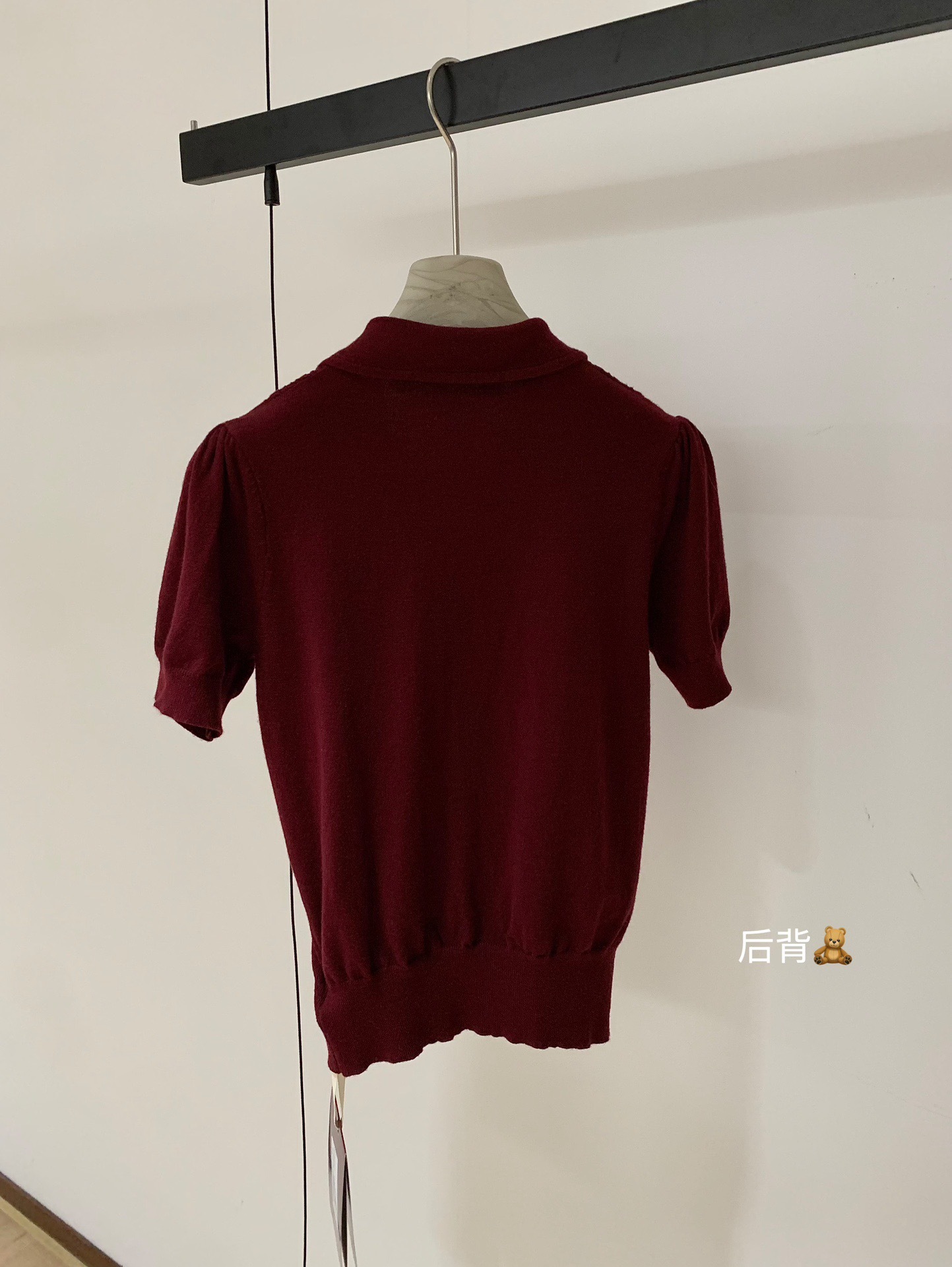 很洋气的娃娃领小衫呀❤️针织面料高弹性,很柔软不扎肉哟!短袖版型遮手臂,收腰版型呐!日常百搭款~蝴蝶结是缝制下去不易掉哦。