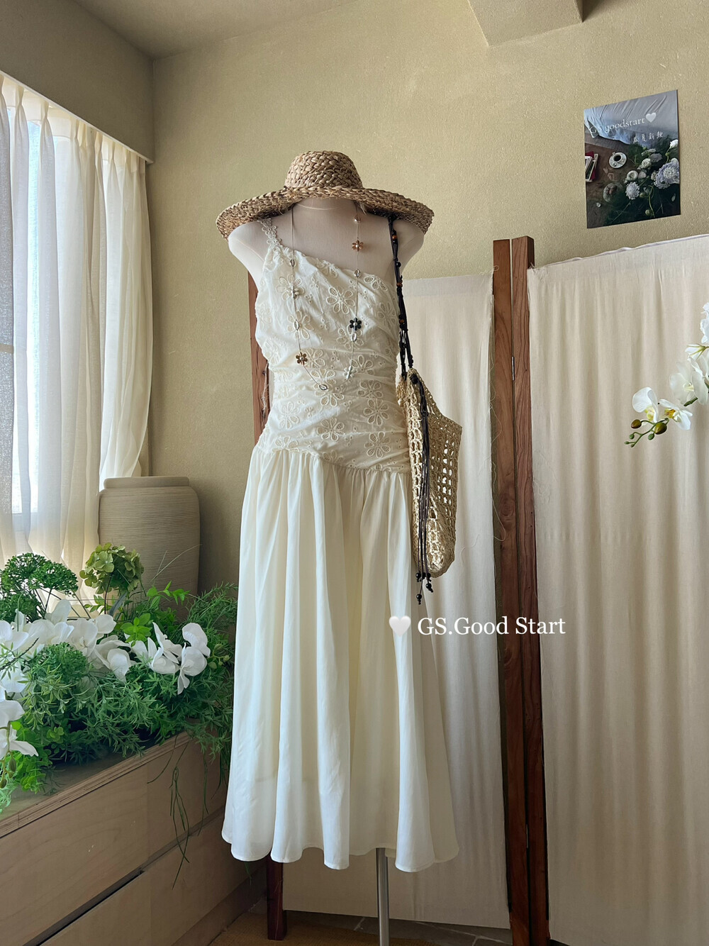 拿捏氛围感,随意出片的裙子🥹OMG真的好美的单肩!肩带(右)都是用蕾丝花花来做的🤤有防滑贴有内衬不会透,侧边有拉链喔~度假带这套去美绝了!!