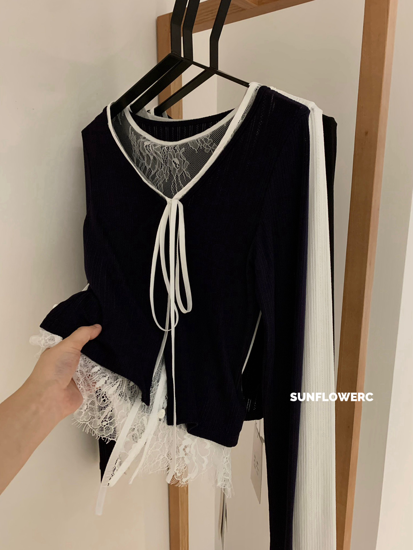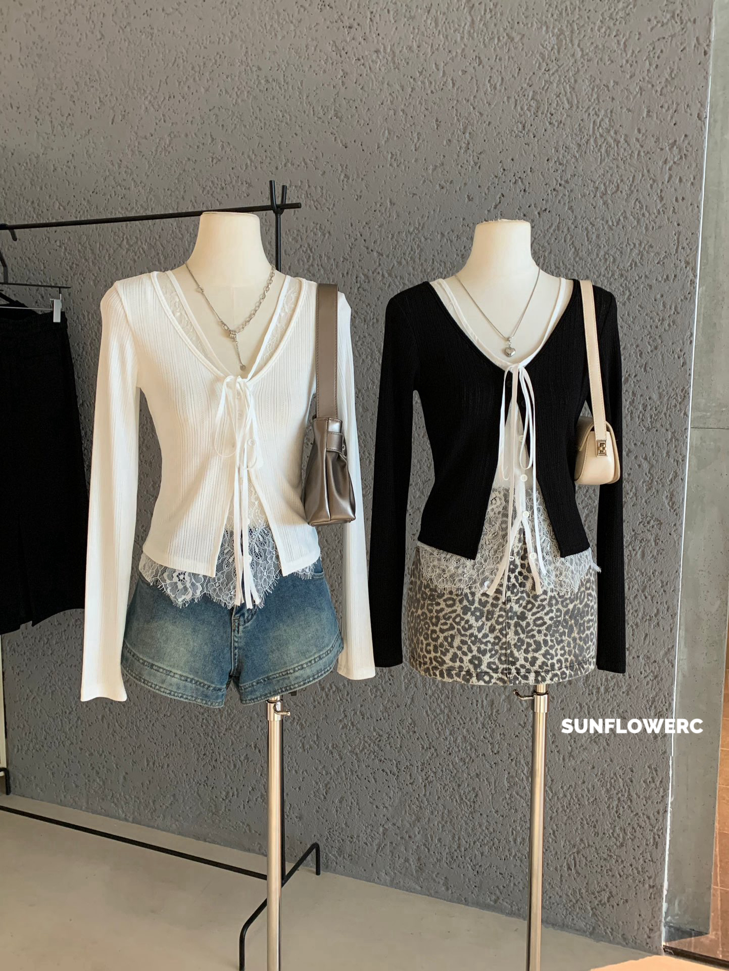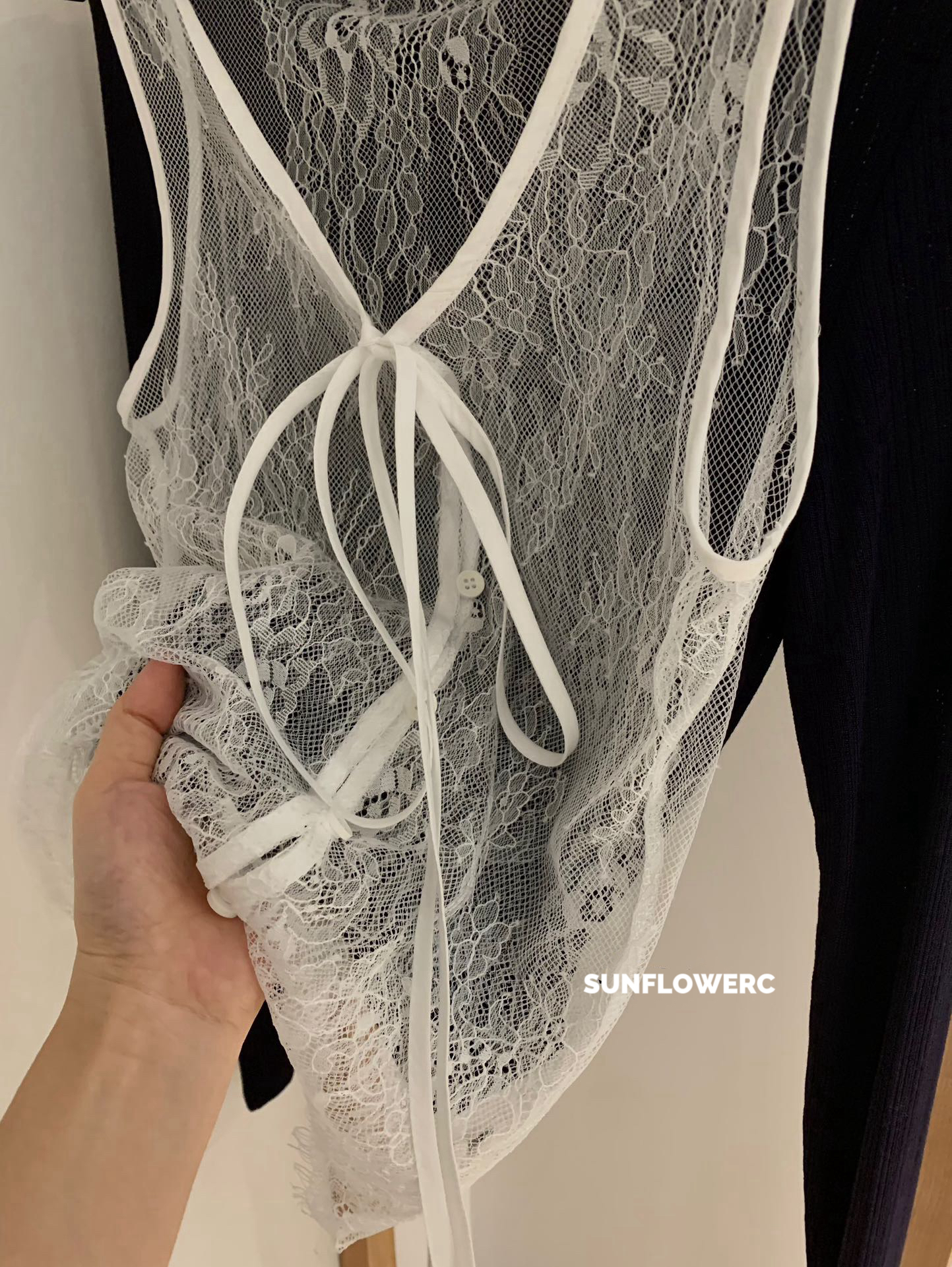 A1484 蕾丝拼接绑带两件式套装 | 蕾丝背心+上衣