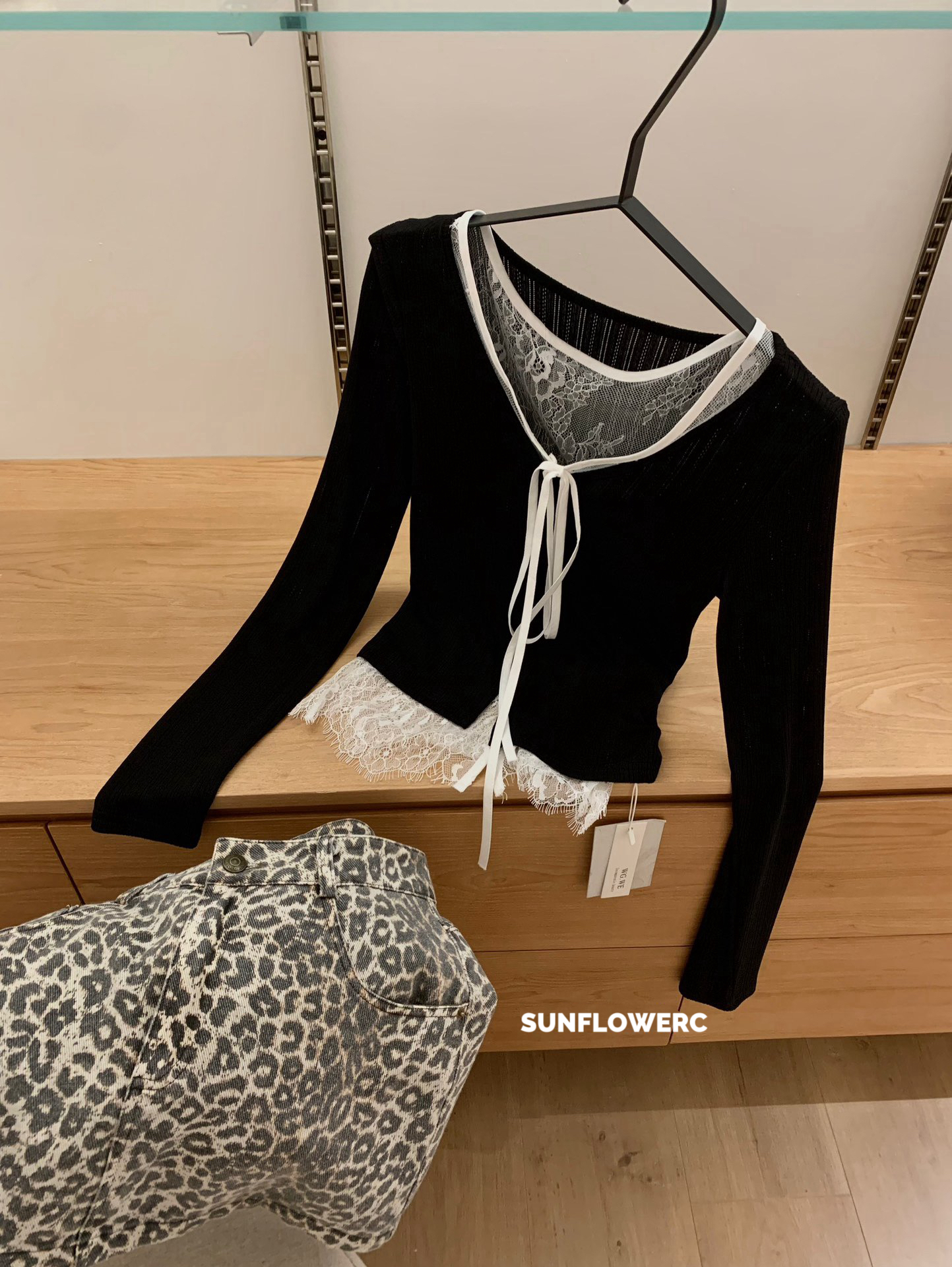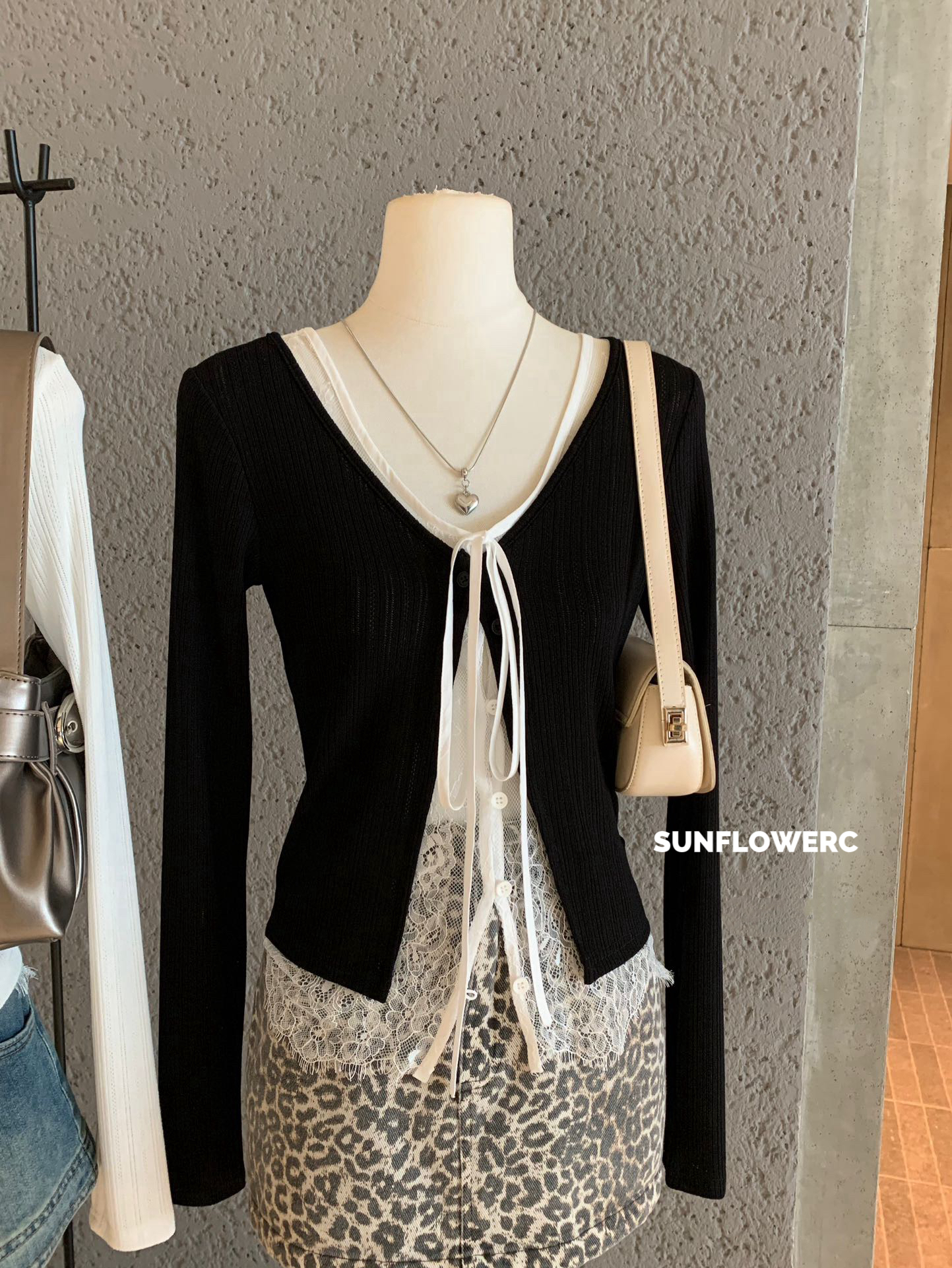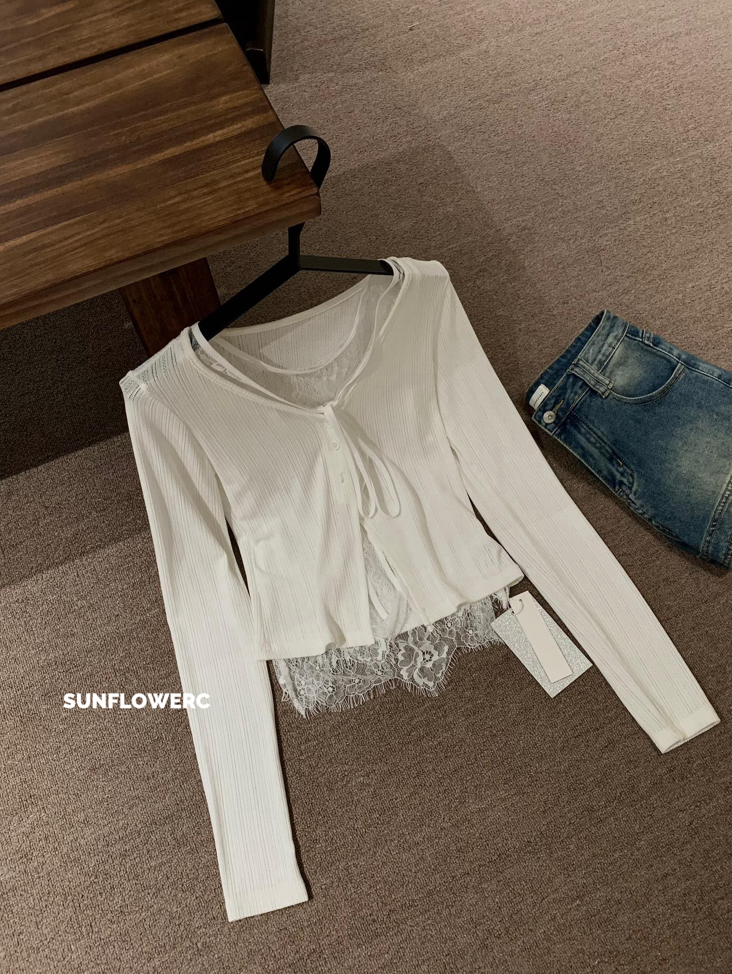 A1484 蕾丝拼接绑带两件式套装 | 蕾丝背心+上衣