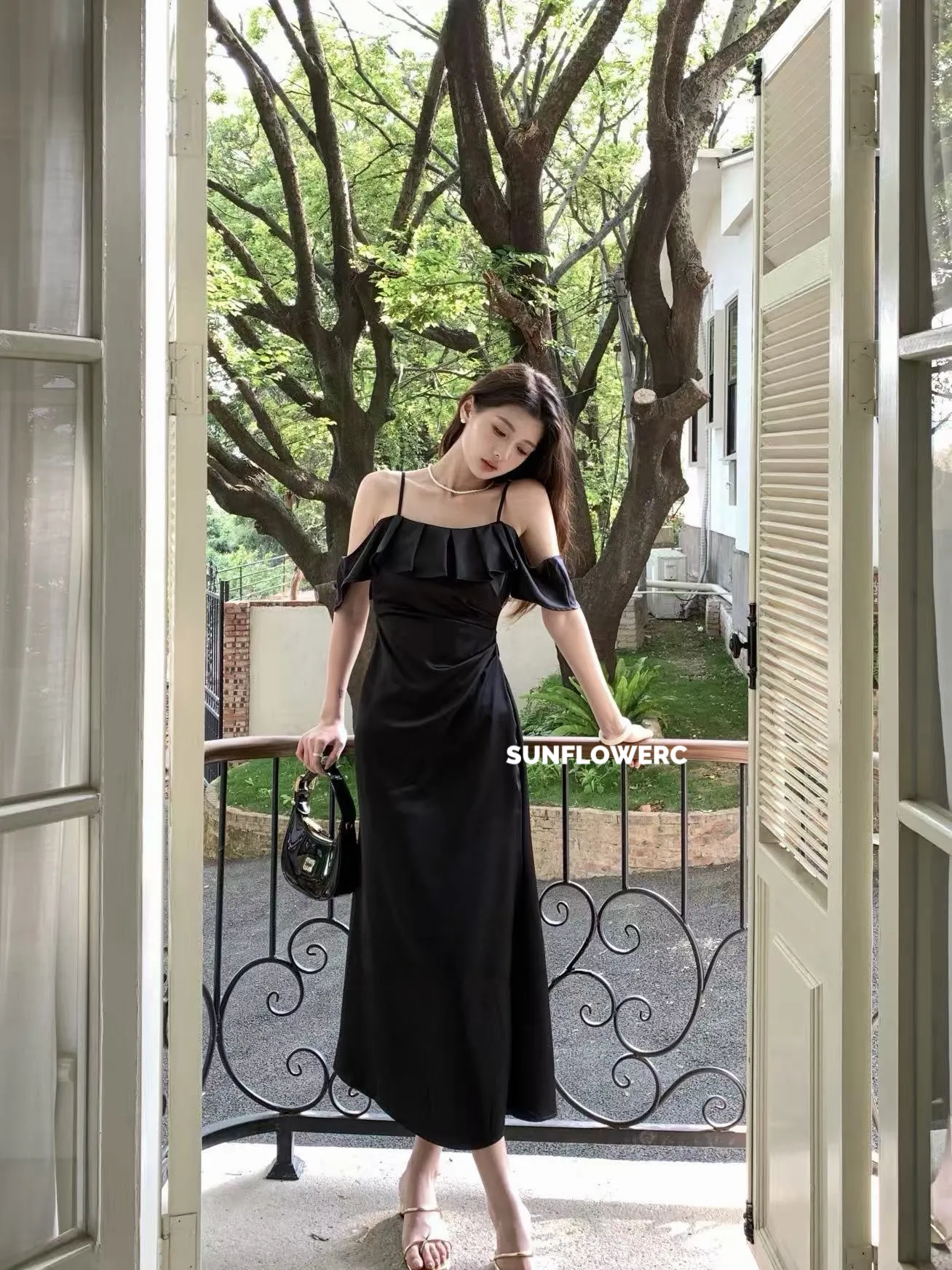 A1469 高级感丝绒抹胸黑色小礼服 | 含胸垫和颈饰🤍