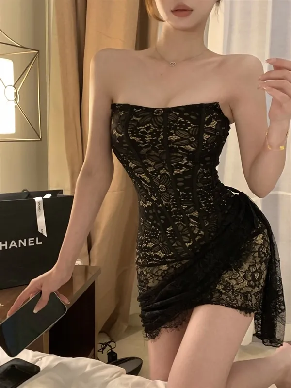 A1548 纯欲性感蕾丝包臀抹胸裙