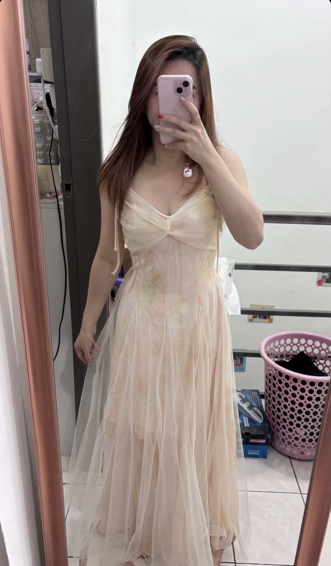 超仙的吊带小纱裙😍度假/伴娘/出席Dinner都可以穿~纱纱都是不会扎肉的那种,软硬适中,很立体的版型~背后有弹性不勒肉,吊带是自己绑蝴蝶结的哦~