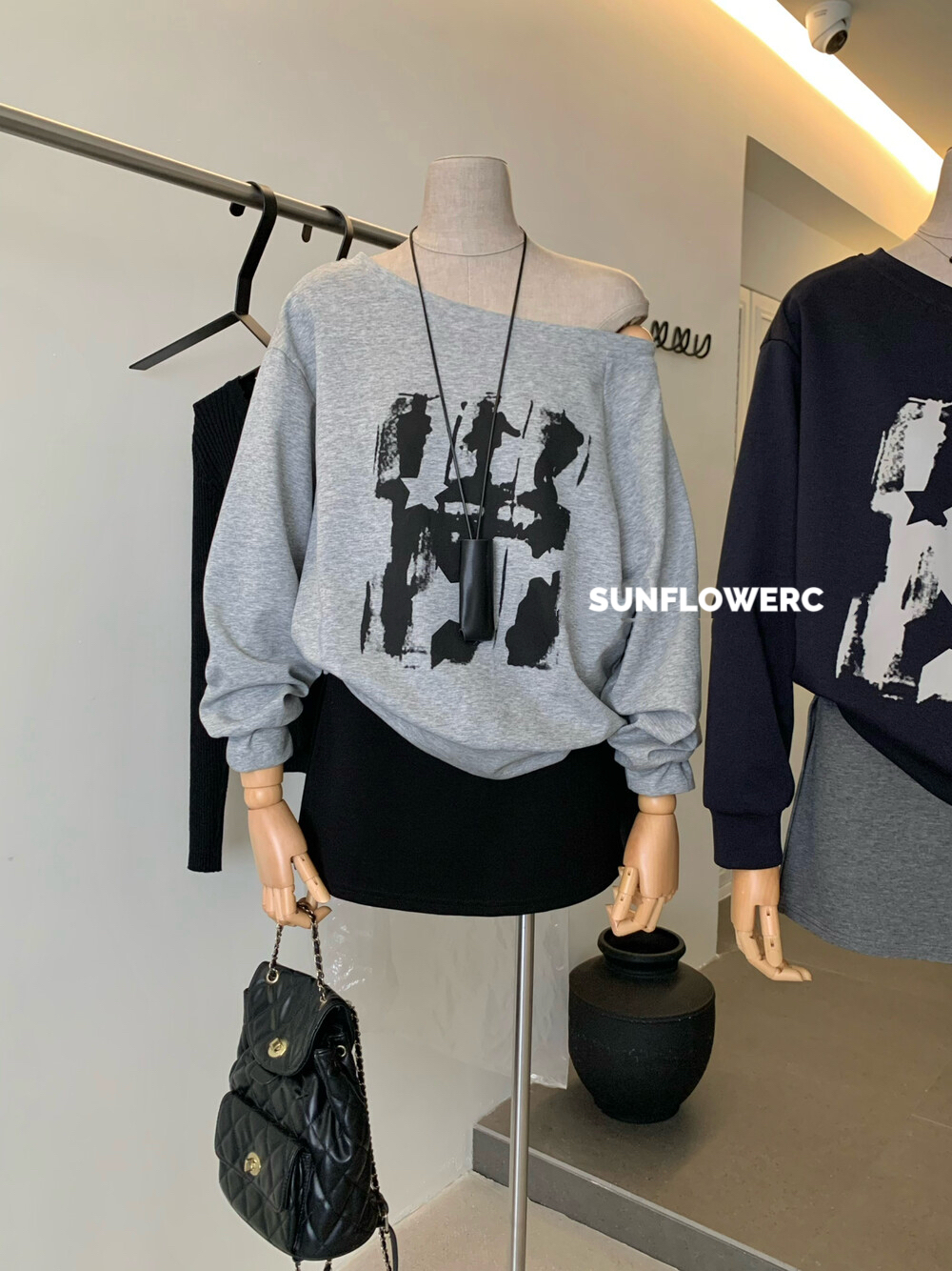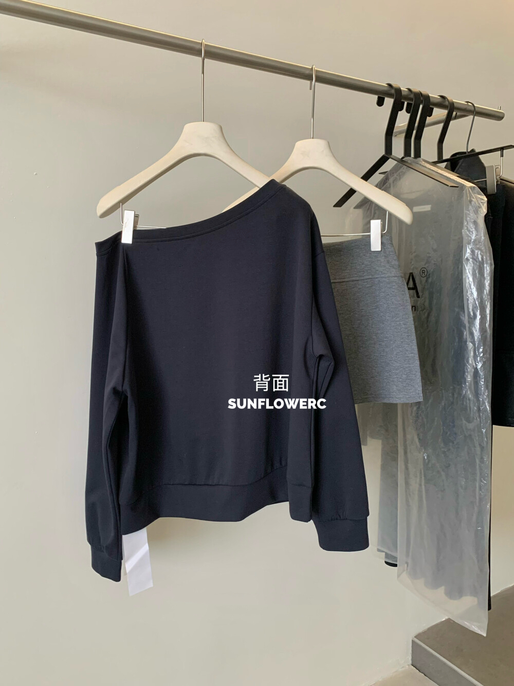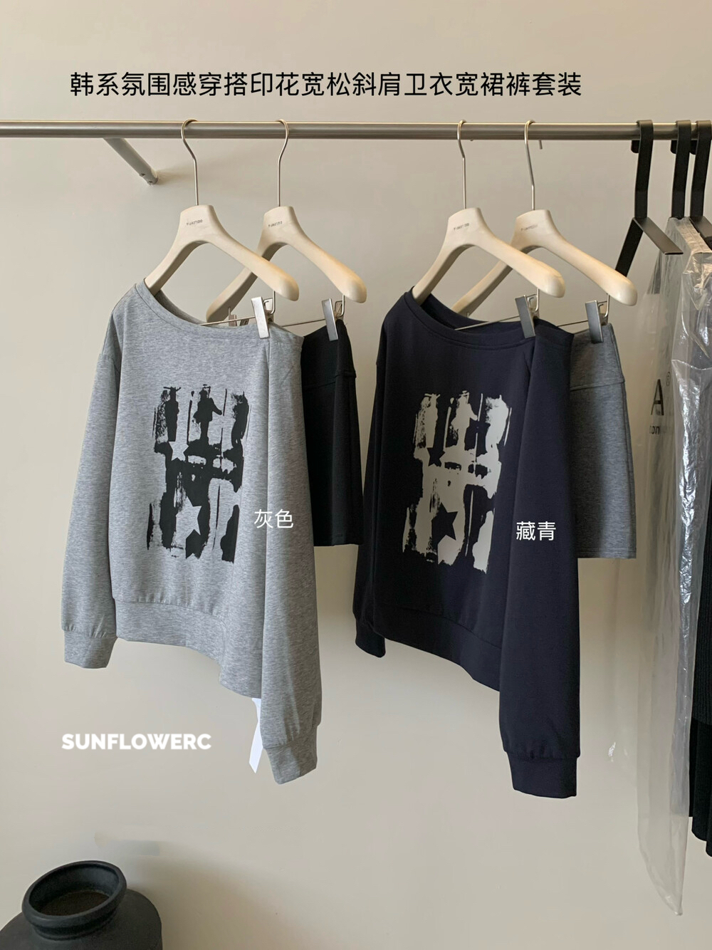 A1482 宽松斜肩薄款卫衣+裙裤 | 两件式套装