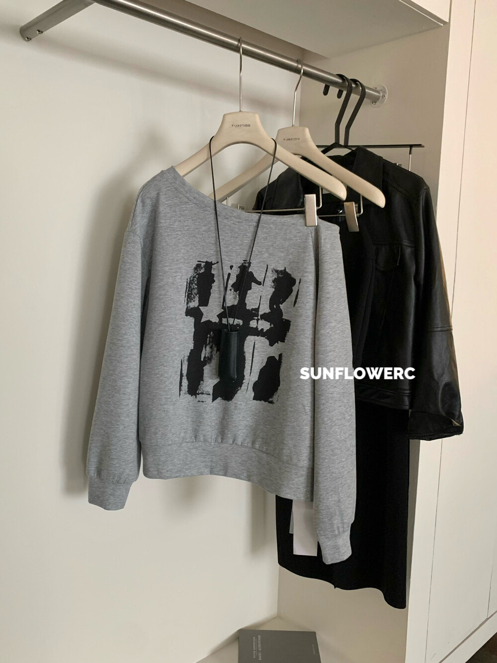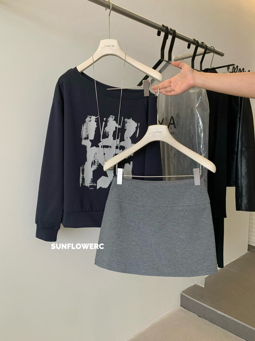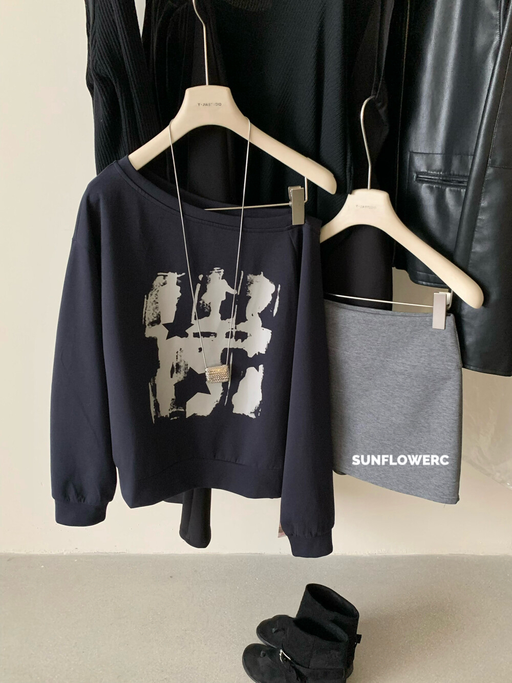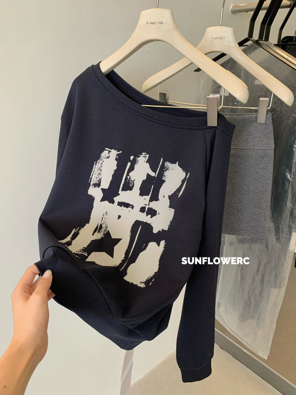 A1482 宽松斜肩薄款卫衣+裙裤 | 两件式套装